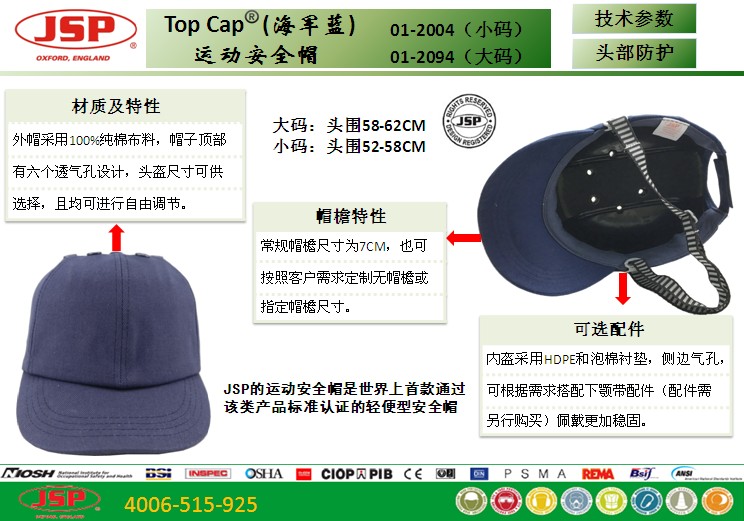 外帽采用100%棉,內盔為HDPE何泡棉襯墊。