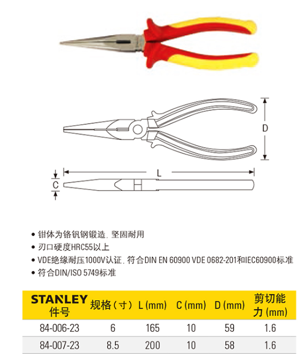 STANLEY絕緣尖嘴鉗
